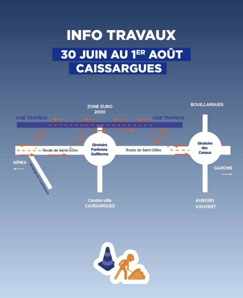 Une déviation sera mise en place et passera par les avenues de la Vaunage et du Mas de Nages et les rues du Panais et de l’ancien chemin des Canaux.