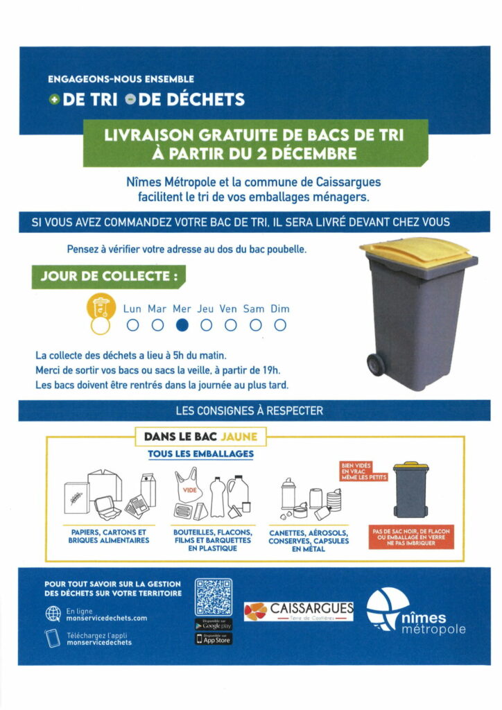 Rappel : Distribution de bacs jaunes par Nîmes Métropole