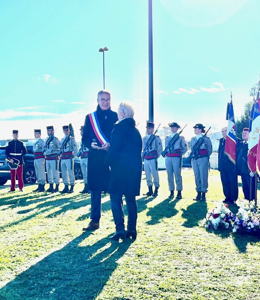 Après la diffusion de l’hymne national, Mme Annie Gagnière a remis à M. Olivier Fabregoul une médaille commémorative.