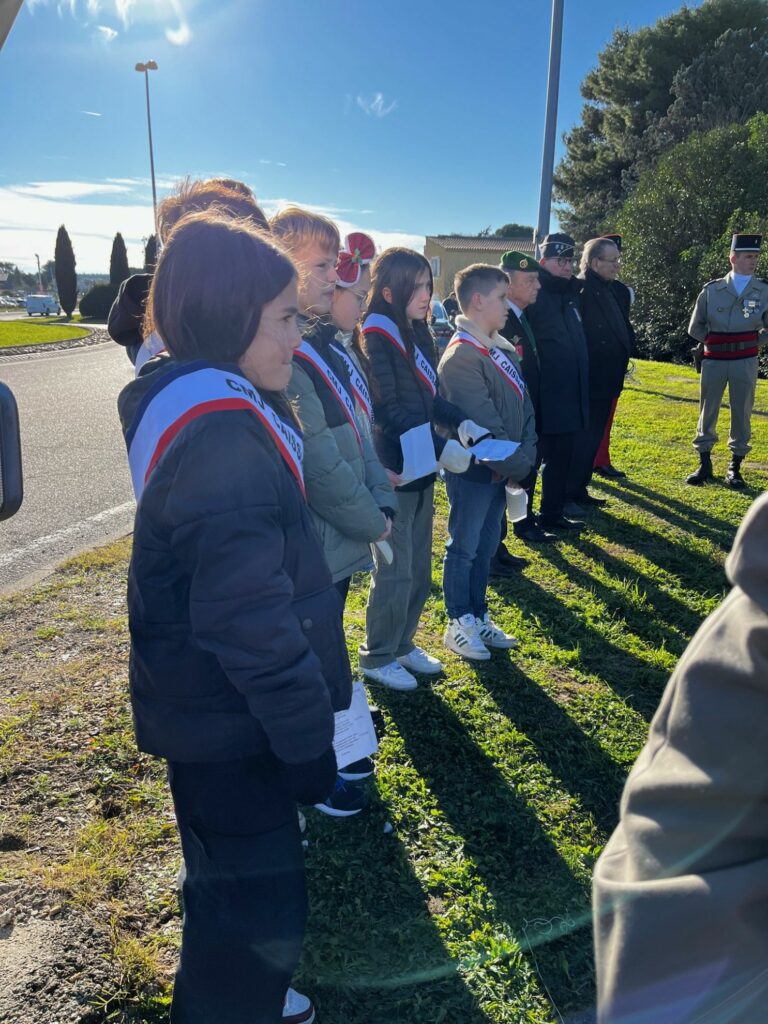 Durant la cérémonie, après allocutions et lectures de messages et de textes, M. le Maire a déposé une gerbe accompagné par deux de ses adjoints le LCL Fabre et le CDT Poissonnier, tous deux décorés de l’ONM.