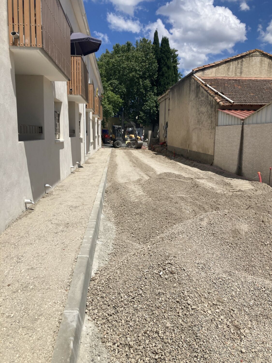 Actuellement, des travaux sont en cours pour achever le dernier tronçon de la rue de la Forge, le long de la maison en partage jusqu’à la rue de l’Abrivado.