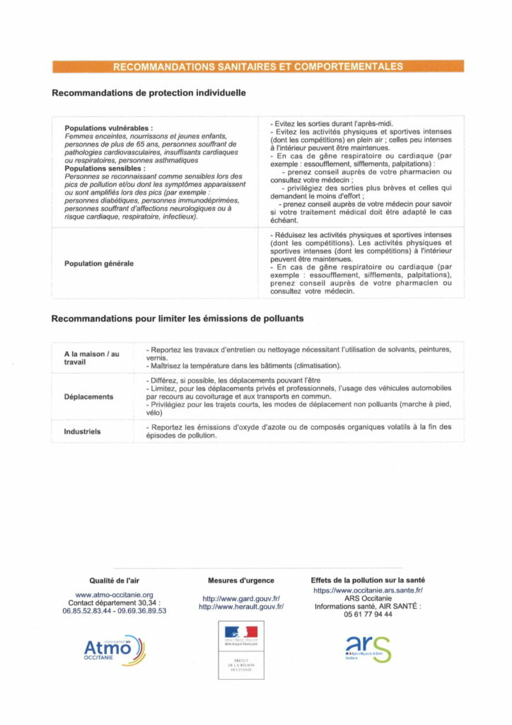 Episode de pollution prévu sur les départements du Gard (30), de l’Hérault (34)