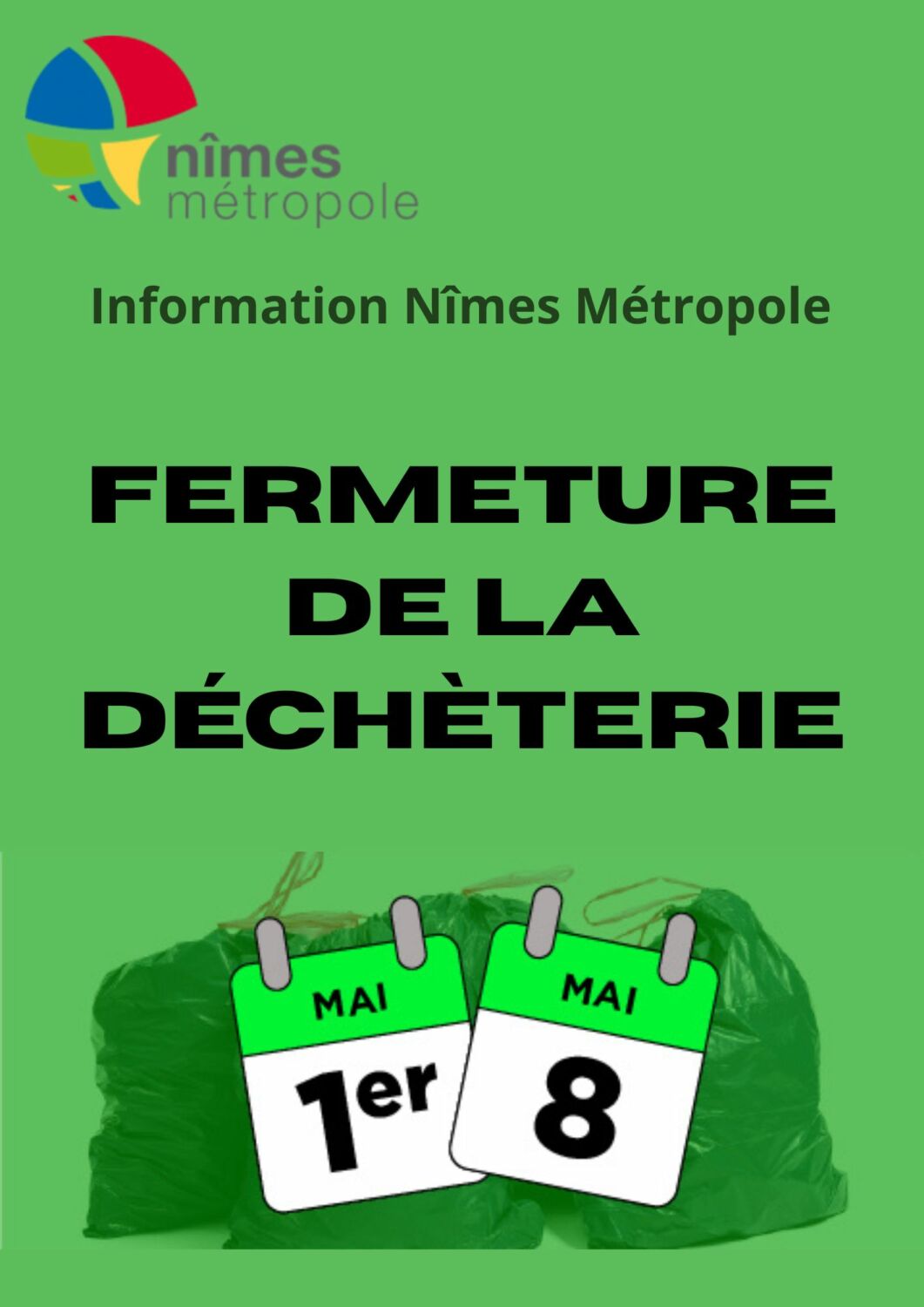 Nîmes Métropole informe : Pour ce jeudi 1er mai, et pour jeudi 8 mai, des fermetures sont à prévoir sur les déchèteries de notre territoire