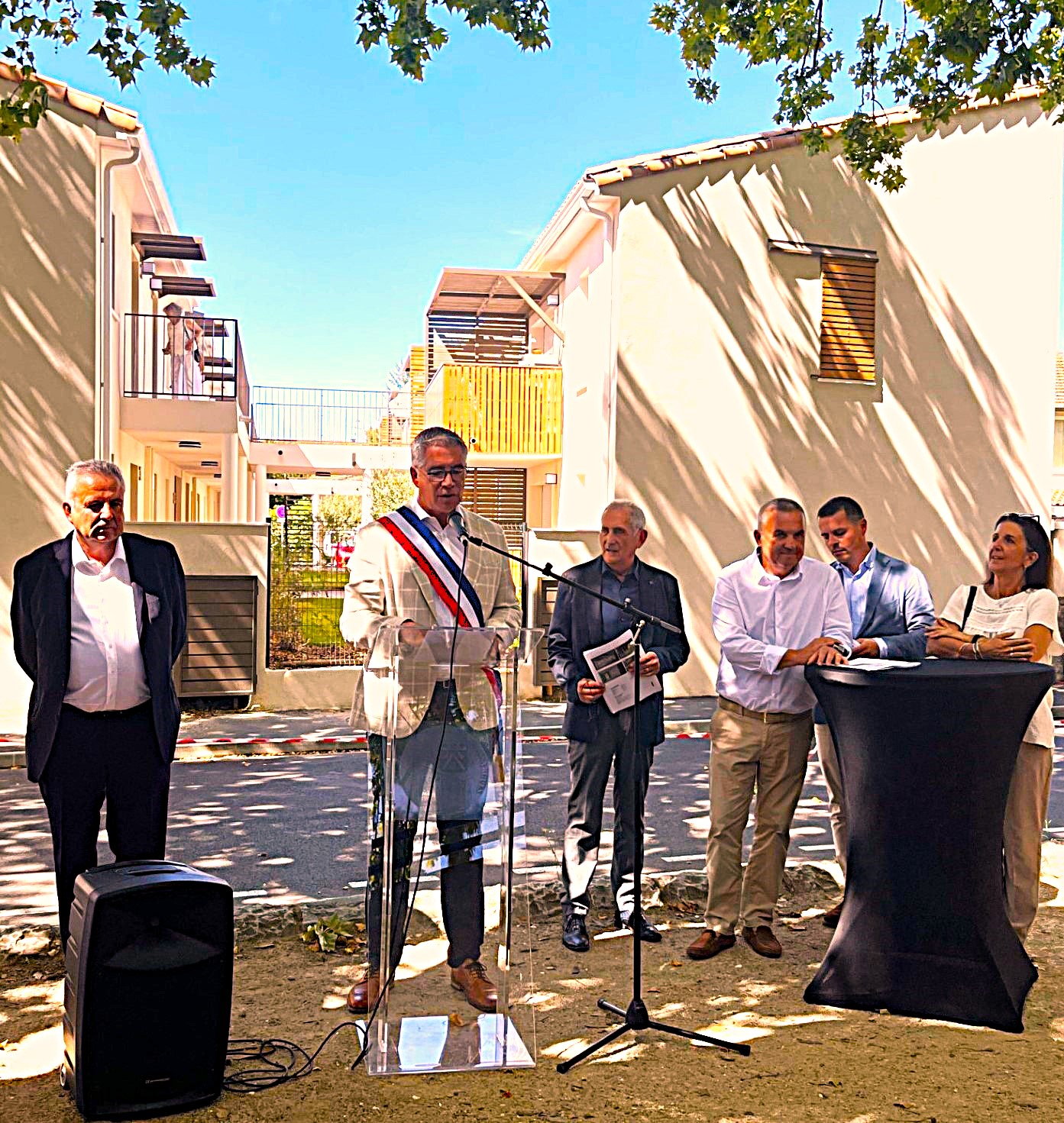Aujourd’hui, tous les acteurs de la réalisation du projet étaient présents et réunis pour cette inauguration, en présence des locataires résidents et leur famille : M. le Maire de Caissargues Olivier Fabregoul, M. Christian Schoepfer ancien maire de Caissargues en fonction au début du projet, le sénateur Laurent Burgoa, le conseil départemental du Gard représenté par son vice-président, M. Rémi Nicolas et la conseillère Valérie Gardiola, le représentant de Franck Proust, président de Nîmes Métropole, M. Jean-Luc Descloux, le directeur général adjoint de Promologis, M. Nicolas Roche, ainsi que de nombreux élus de notre mairie.