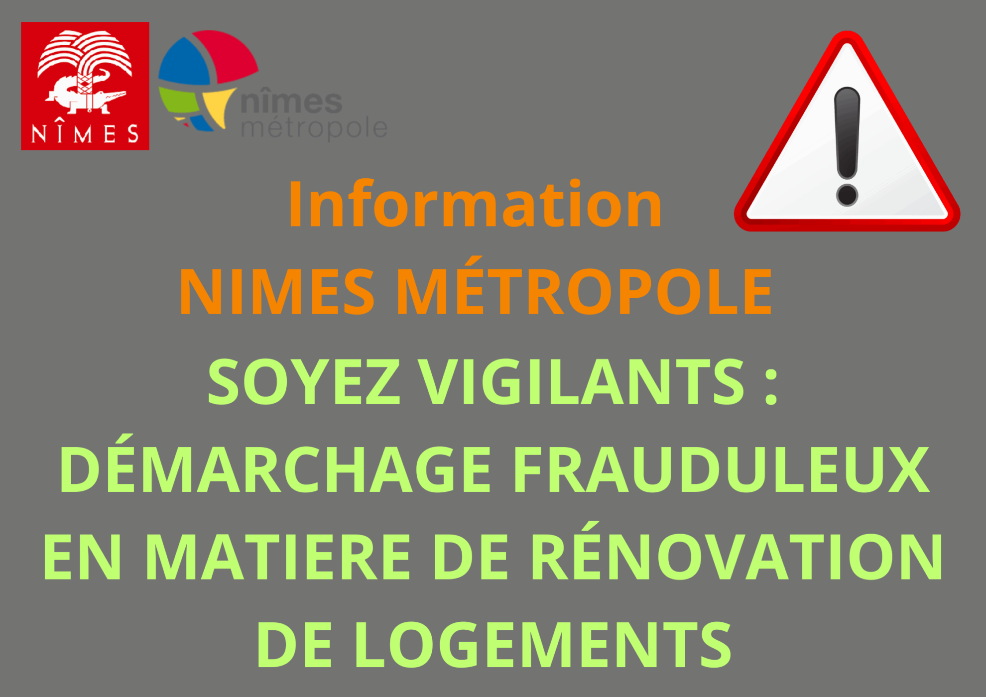 Nîmes Métropole informe : L’Agglomération appelle tous les administrés de Nîmes Métropole à une grande vigilance sur les usurpations diverses et aux démarches trompeuses en matière de rénovation de leur logement.