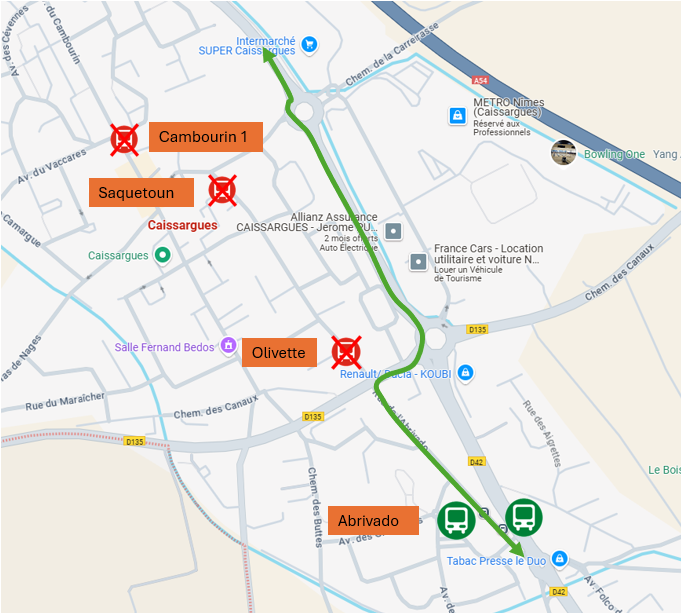 Ainsi, les arrêts Saquetoun, Olivette et Cambourin 1 sont reportés à l’arrêt Abrivado.