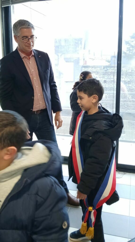 Ce dernier a fait découvrir aux élèves quelque peu intimidés la salle du conseil, et certains ont même eu le privilège de revêtir son écharpe tricolore !