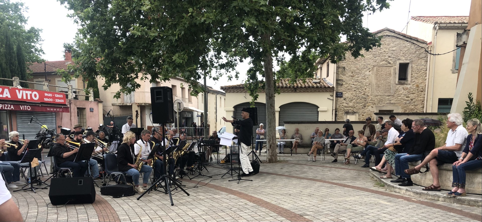 Le collectif Big Band 30 a brillamment chassé les nuages du ciel menaçant pour ce dernier volet des Musicales de Printemps samedi 8 juin en fin de matinée sur la place Marie-Rose Pons !