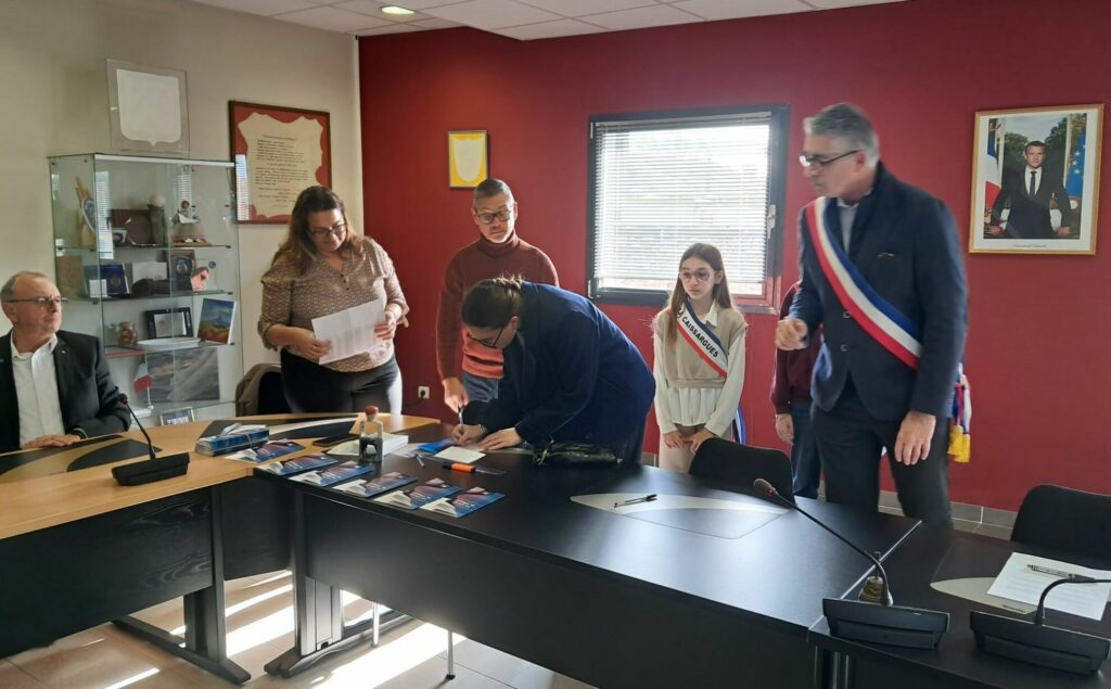Samedi 14 février, en fin de matinée, 7 jeunes caissarguais se sont vus remettre de façon officielle en mairie leur première carte électorale ! C’est quelque peu impressionnés qu’ils ont visité les lieux. Il leur a été présenté l’historique du droit de vote et l’importance du devoir qu’il représente : la liberté de faire ses propres choix et de participer ainsi à la vie républicaine de leur commune, de leur département, de leur région et de leur pays ! Le partage du verre de l’amitié a ensuite agréablement clôturé cette cérémonie, dans l’échange avec les élus et les jeunes caissarguais accompagnés par leur famille.