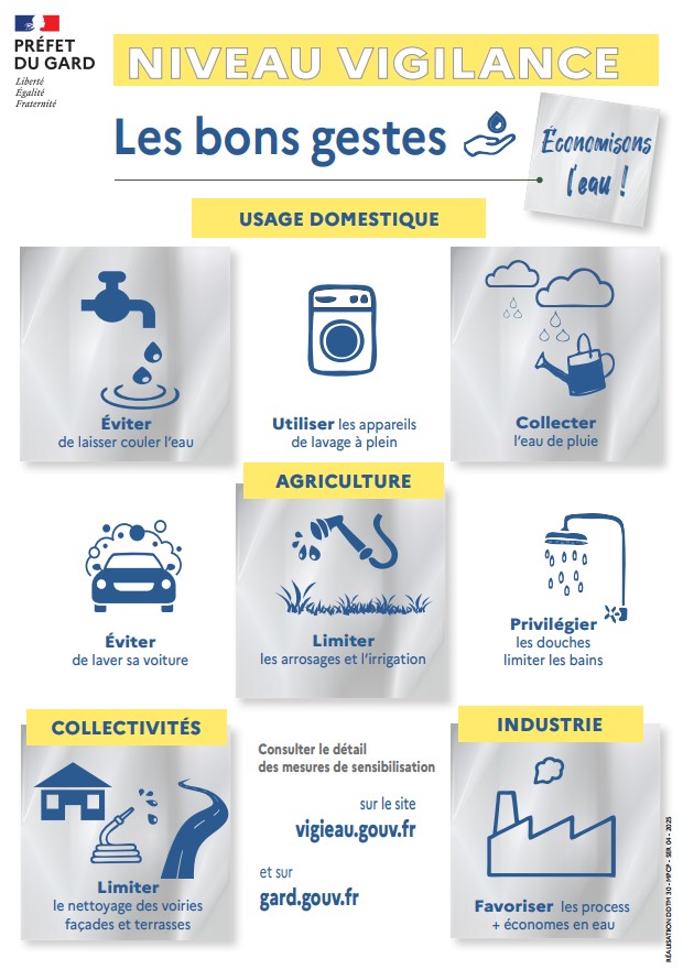 Sur les communes en situation de vigilance : il est demandé à chacun d’adopter un comportement écoresponsable, en utilisant l’eau de manière mesurée.