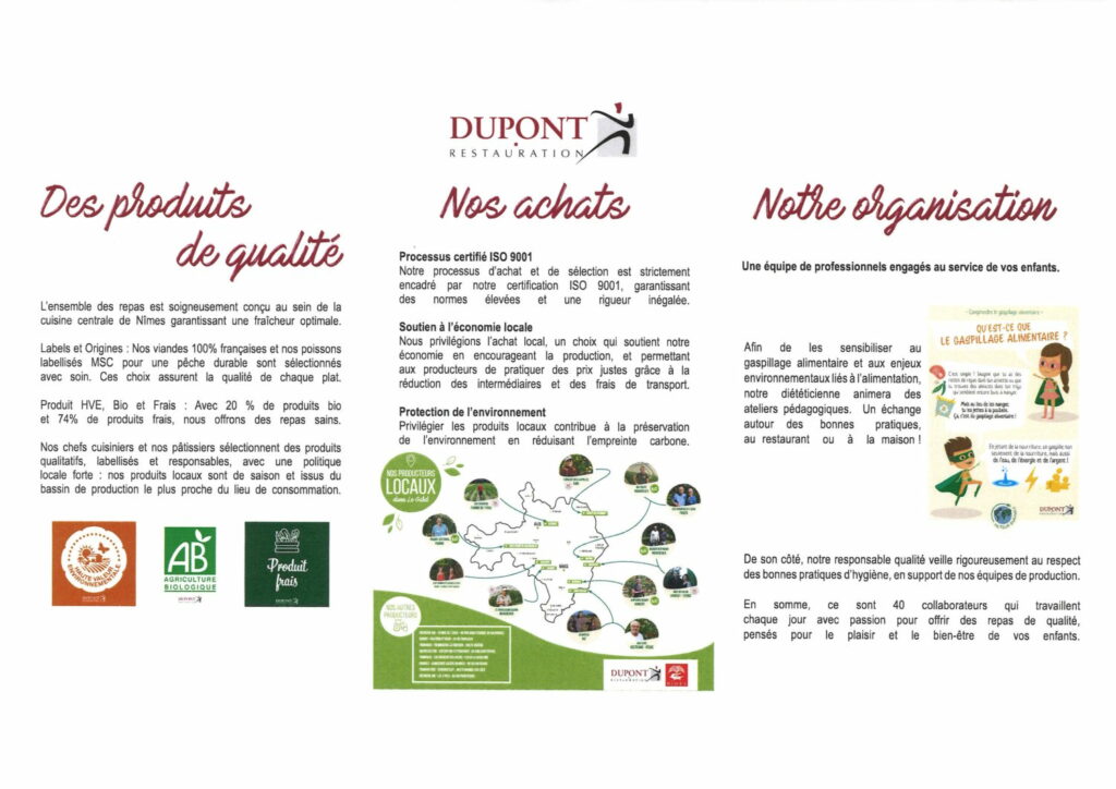 Bénéficiant de la cuisine centrale de Nîmes, Dupont Restauration propose des repas « fait maison » pour le plus grand plaisir des élèves de nos cantines scolaires.