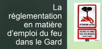 Réglementation applicable à l’intérieur et jusqu’à une distance de 200 mètres des bois, forêts, landes, maquis, garrigues, plantations et reboisements, et sauf si le vent supérieur à 20 Km/heure (interdiction stricte dans ce dernier cas)