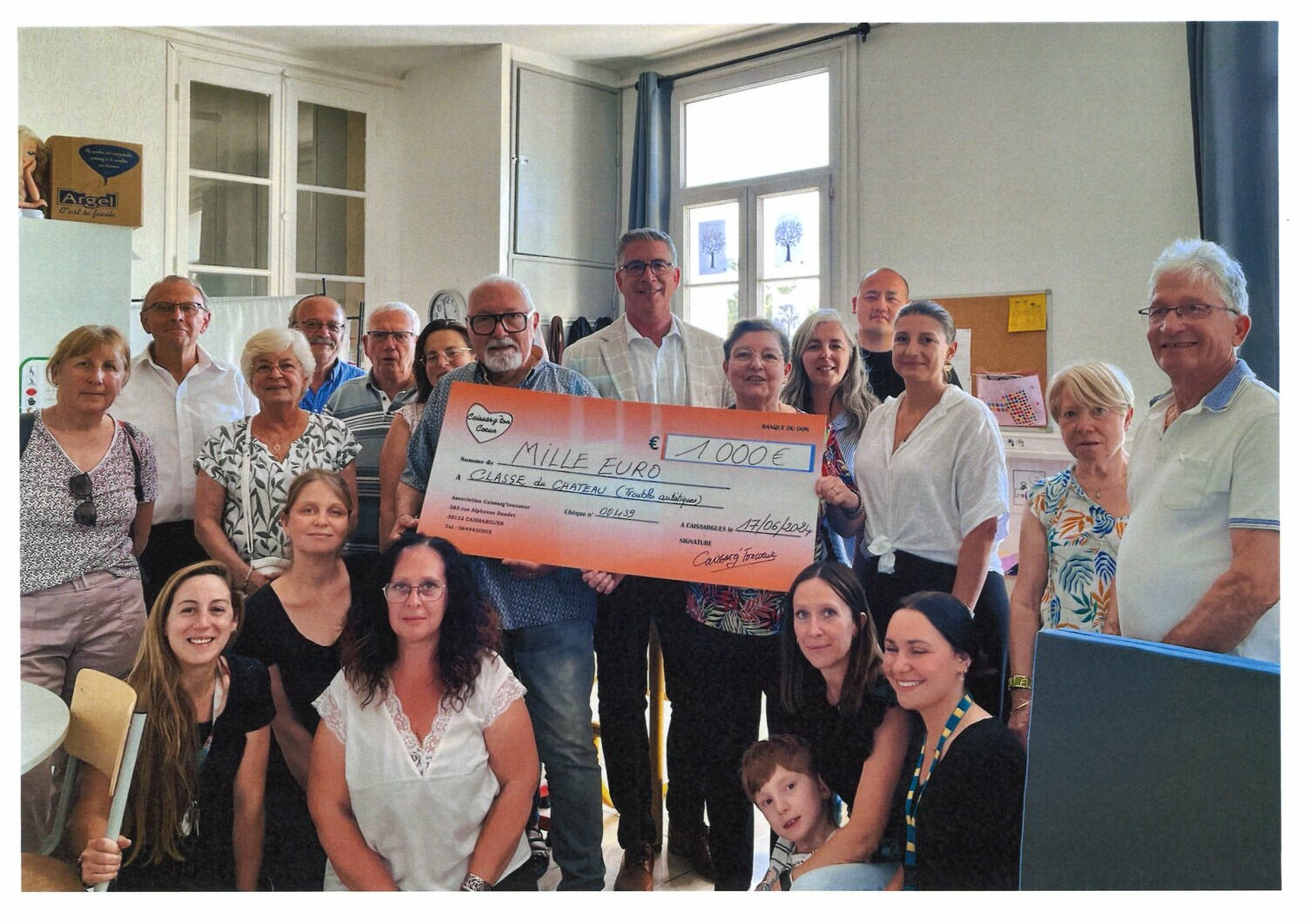 Hier, lundi 17 juin en fin de journée, les associations Caissarg’toncoeur et Se Canta se sont rendues à la classe du château, classe pour enfant autistes, à l’école Cambourin afin de remettre un chèque de 1000€ qui servira à l’achat de matériel informatique.
