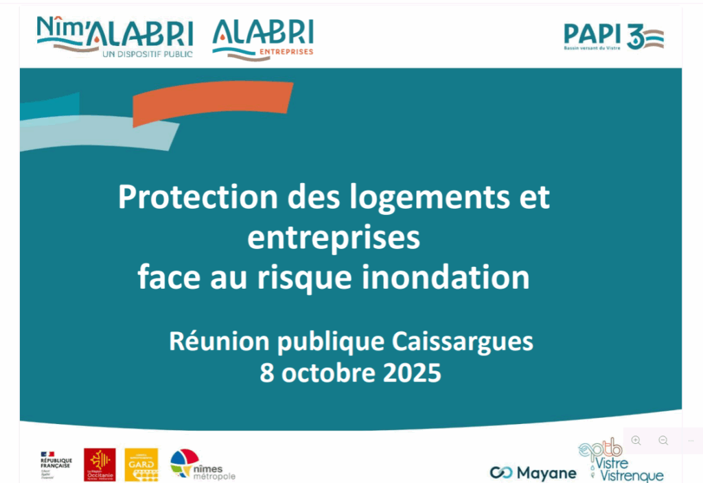 Grâce au programme Nîm’ALABRI, un accompagnement gratuit ainsi que des subventions pouvant couvrir jusqu’à 100 % du montant des travaux sont proposés. À Caissargues, près de 789 logements et 118 entreprises sont concernés par le risque d’inondation.