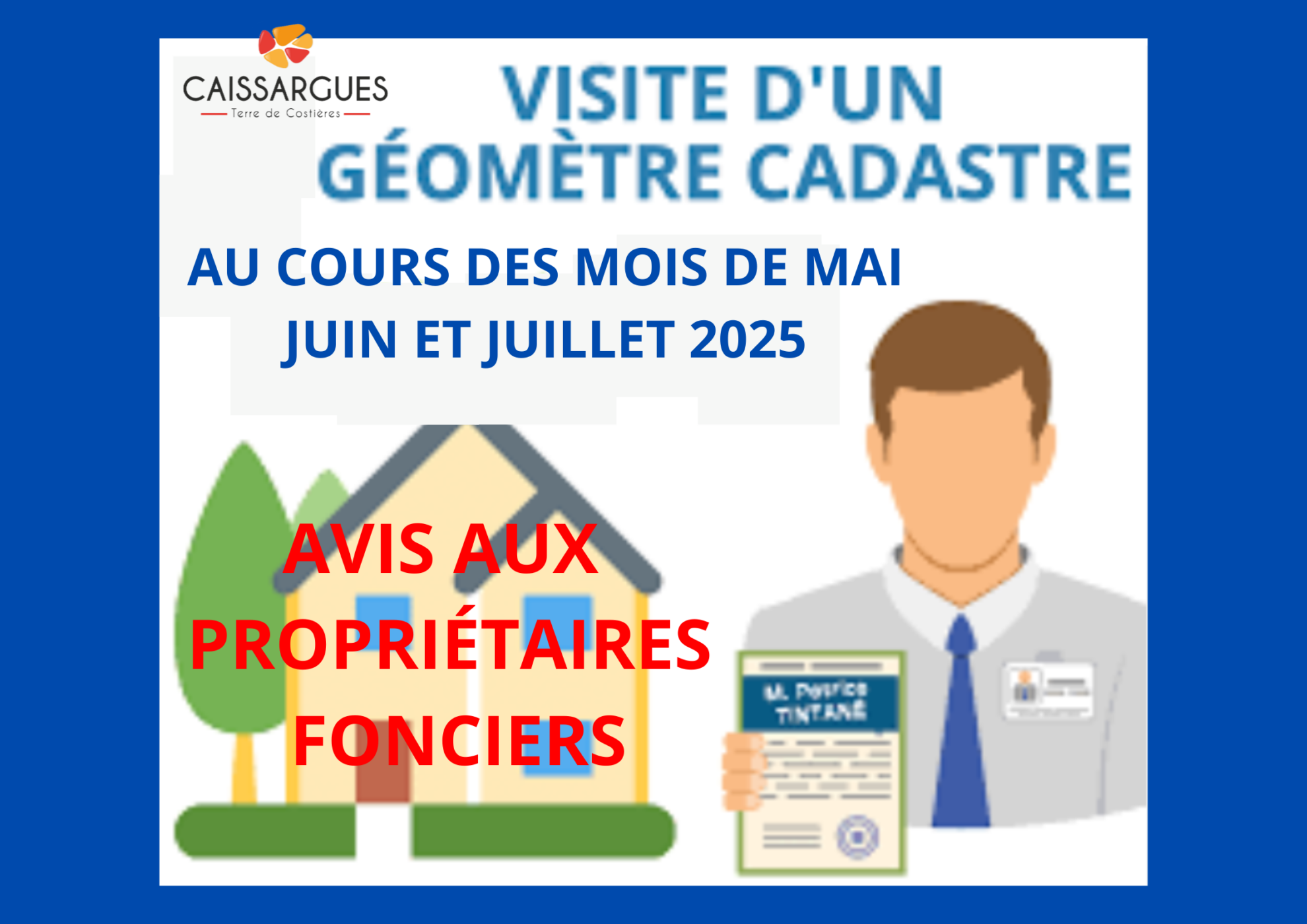Les propriétaires fonciers sont informés que Monsieur AKACH-CHAR, géomètre du cadastre, sera de passage en commune au cours des mois de mai, juin et juillet 2025 afin de procéder aux mises à jour annuelles de la documentation cadastrale et à la tenue à jour du plan cadastral.