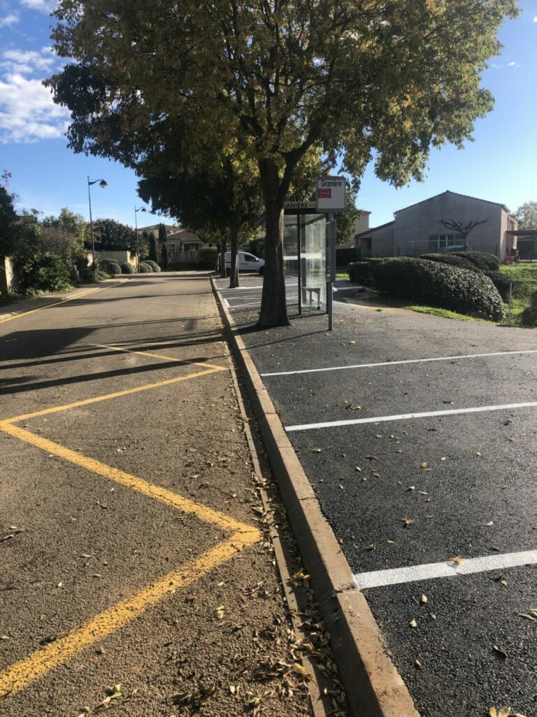 – Avenue de la Méditerrannée, bitumage de la rue et création de part et d’autres de l’abribus de 10 places de stationnement. De l’autre côté d l’avenue, en face, une ligne jaune a été peinte pour empêcher aux véhicules d’y stationner.