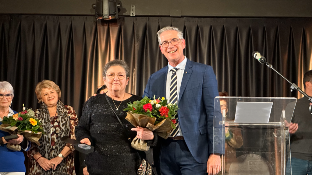 M. le Maire a ensuite fait son discours, puis M. Franck Proust, Président de Nîmes Métropole, a pris la parole pour saluer le travail et l’investissement de M. Fabregoul. La cérémonie s’est ensuite ponctuée par différentes distinctions remises à des femmes engagées dans la vie associative caissarguaise. Silvia Alexieva, Présidente du Caissargues Chess Club, déjà distinguée par la médaille de la ville, s’est vu remettre la médaille de Nîmes Métropole par son Président Franck Proust, pour honorer sa performance pour avoir décroché la 1ère place au championnat d’échecs européen et la seconde au championnat mondial dans sa catégorie (féminine plus de 50 ans). Liliane Fraigneau, Présidente du club Amitié Loisirs et Micheline Roux Présidente de Caissarg’ toncœur ont toutes deux été décorées par la médaille de la ville pour leur engagement associatif.
