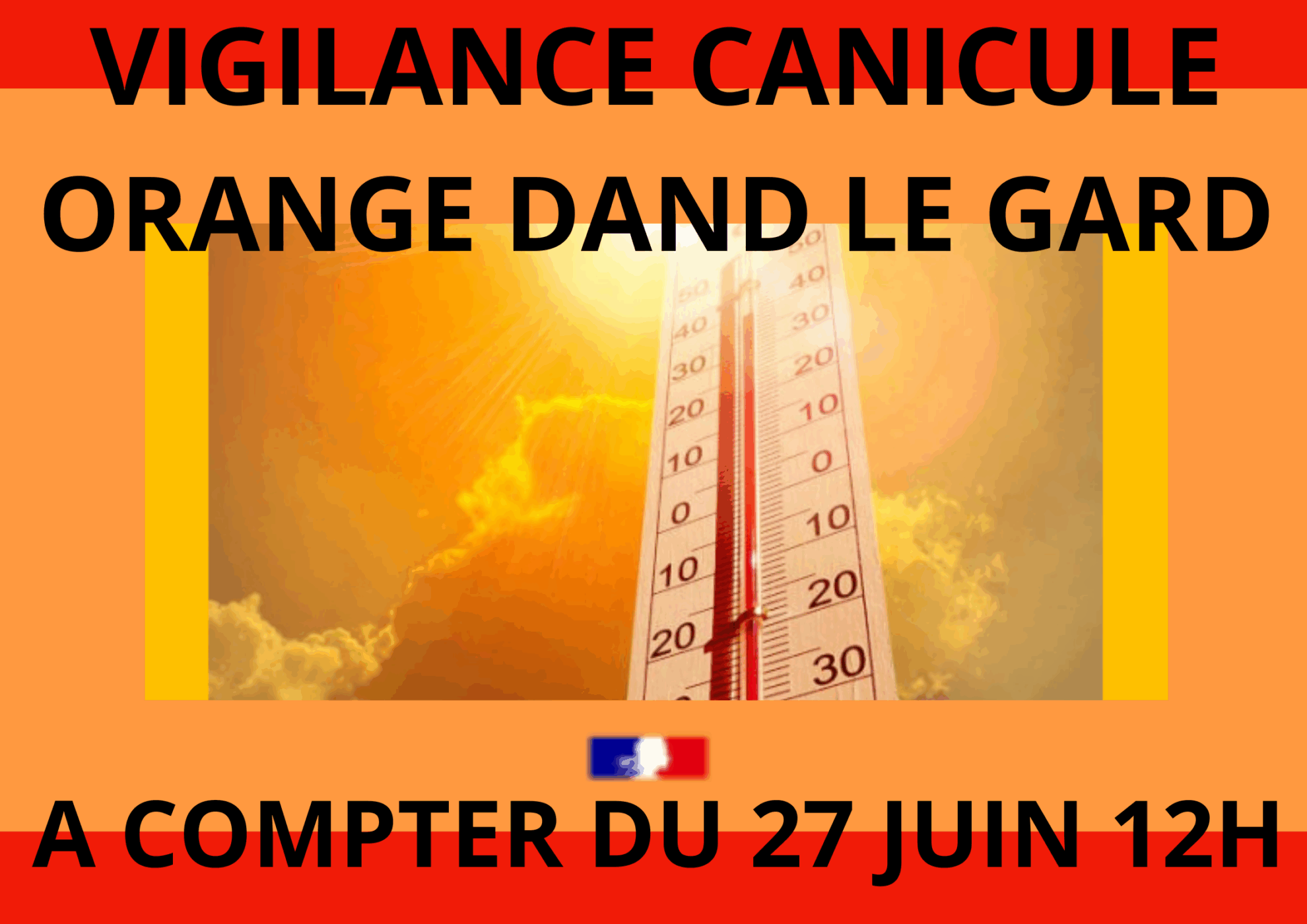 Météo France a activé la vigilance canicule orange de niveau 3 dans le Gard à compter du vendredi 27 juin à midi. L’épisode pourrait durer plusieurs jours.