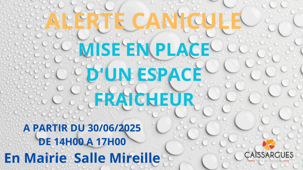 En raison des fortes chaleurs annoncées mettant notre commune et ses alentours en alerte canicule, la municipalité propose d’accueillir les personnes souffrant de la chaleur au sein de leur domicile, à la salle Mireille, annexée à la mairie, où un espace fraîcheur climatisé a été mis en place.