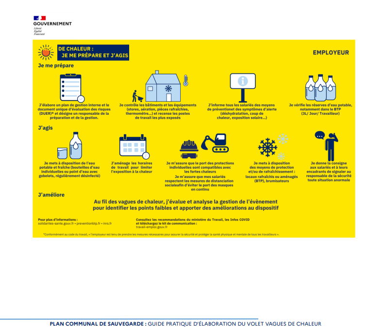 Pendant une vague de forte chaleur, pour chacun et tout particulièrement pour les personnes fragiles, femmes enceintes, bébés, jeunes enfants, personnes âgées ou en situation de handicap, il est nécessaire de :