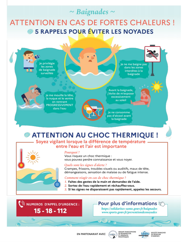 En cas de malaise, composez les numéros d’urgence suivants : le 15, le 18 ou le 112